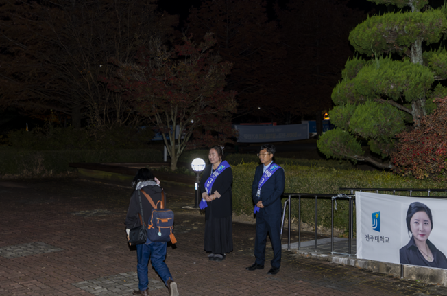 지난 15일 오후 6시 40분부터 미래융합대학 하랑 선거운동본부가 선거운동에 본격 돌입했다. 일을 하면서 수업을 듣는 미래융합대학 재학생들의 학사일정에 맞춰 주말에도 선거운동을 진행했다.
